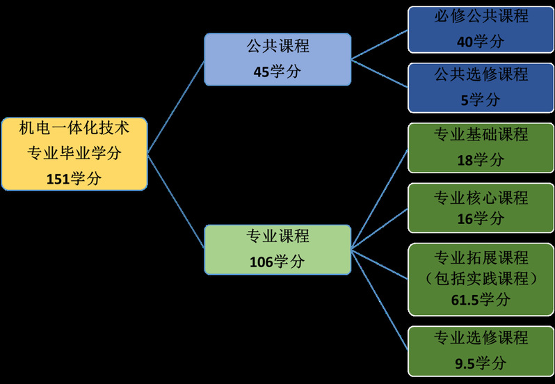 毕业生最低毕业学分数为151学分,主要分为公共课程与专业课程两大类。