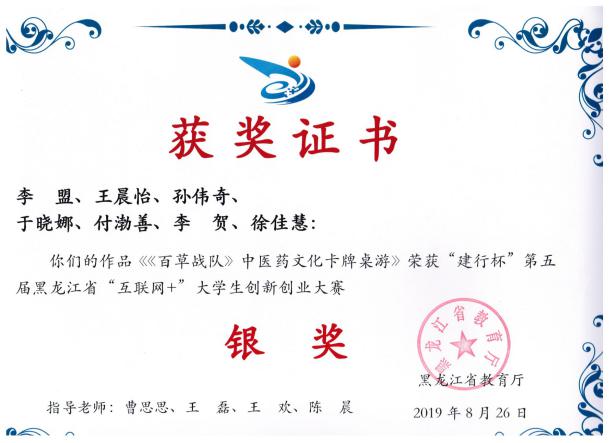 11 | 2019年 | 第五届“建行杯”创新创业大赛 | 国家级 |