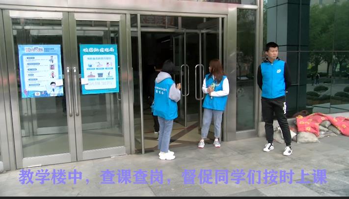 教学楼中,查课查岗,督促同学们按时上课,保证学校正常教学运转。