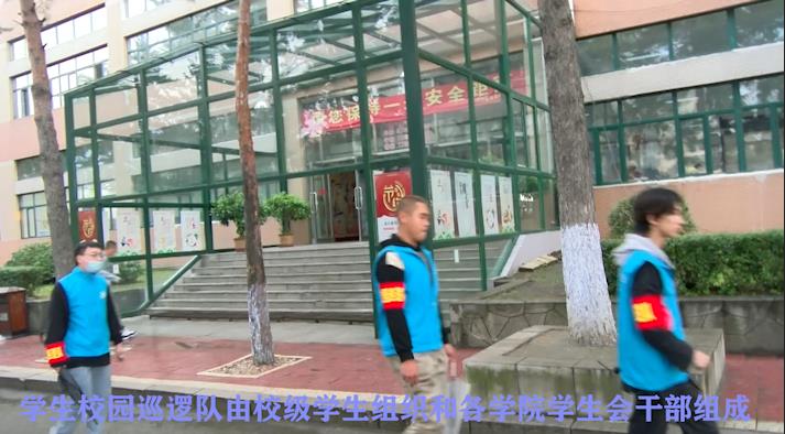 学生校园巡逻队由校级学生组织和各学院学生会干部组成,他们承担起了学生自我管理、自我教育的任务。耐心劝导同学不要食用外卖食品,不要违规离开校园等等不当行为,靓丽的蓝色给学生以警示,为校园的安全提供了保障。