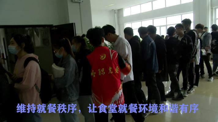 食堂上下,我们的志愿者巡查劝导,维持就餐纪律,让食堂就餐环境和谐有序,哈职志愿的红马甲靓丽、耀眼!