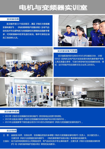 主要开发的实训项目有:三菱调速系统调试与维修、台达调速系统调试与维修等,每年可供200名学生完成实训课程。