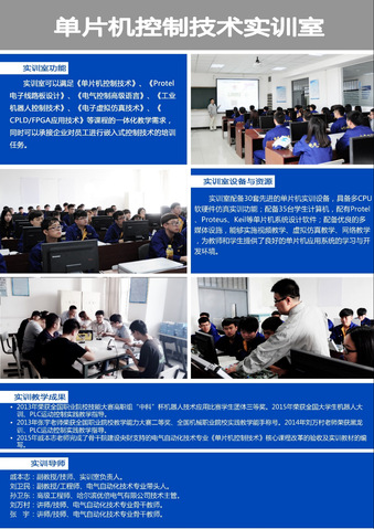 主要开发的实训项目有:单片机数据传送实训、单片机数据排序实训、单片机并行口输入输出实训、单片机外部中断实训,每年可供300名学生完成实训课程。