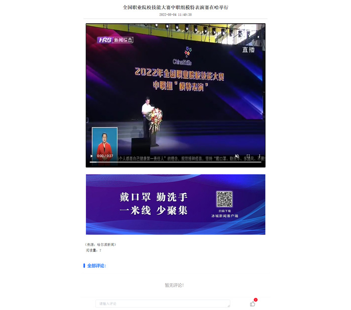 哈尔滨电视台《新闻联播》:全国职业院校技能大赛中职组模特表演赛在哈举行